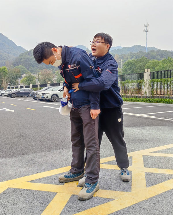 After the fire extinguisher is used, the safety officer organizes on-site teaching of Heimlich first aid, chest compression and artificial respiration first aid.