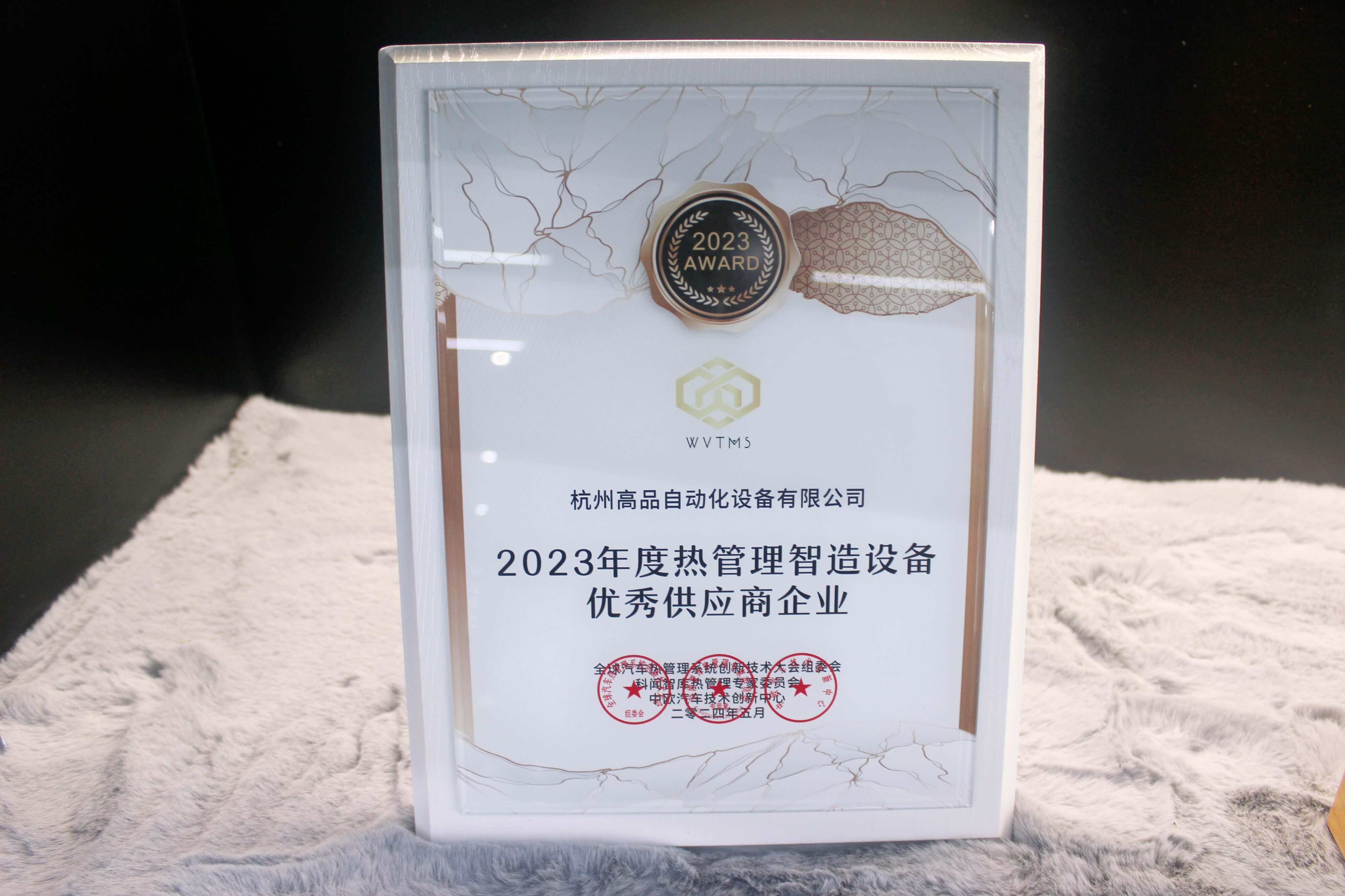 今回の大會(huì)で、杭州高品自動(dòng)化設(shè)備有限公司はその卓越した技術(shù)と製品により、2023年度熱管理製造設(shè)備の優(yōu)秀サプライヤー企業(yè)として表彰されました。この賞は、同社の過(guò)去一年間の努力に対する評(píng)価であるとともに、熱管理設(shè)備分野での革新能力の高さを認(rèn)めるものです。