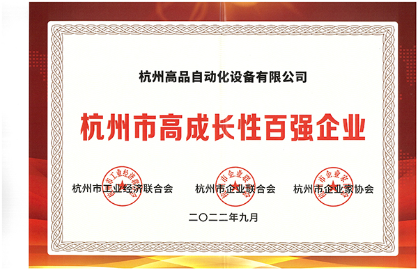 弊社は「2022杭州市高成長(zhǎng)性百?gòu)?qiáng)企業(yè)」の栄譽(yù)稱(chēng)號(hào)を獲得しました。