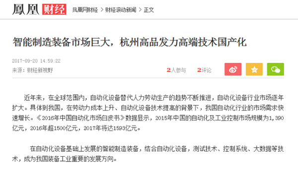 近日,鳳凰、新浪、網(wǎng)易、慧聰?shù)纫槐娭髁髅襟w,紛紛報道高品子公司——蘇州高騰正式開業(yè)。憑借著行業(yè)領(lǐng)先的綜合實力和近年來的快速發(fā)展,作為本土致力于高端非標自動化設(shè)備國產(chǎn)化的企業(yè),高品吸引了國內(nèi)媒體的關(guān)注。