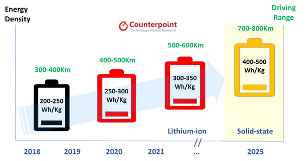 [ 電池能量密度和電動汽車?yán)m(xù)航里程都在提升 ]